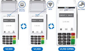 The VL110 GPRS (General Packet Radio Services) terminal connection will transition from 4G / GPRS to Wi-Fi automatically.